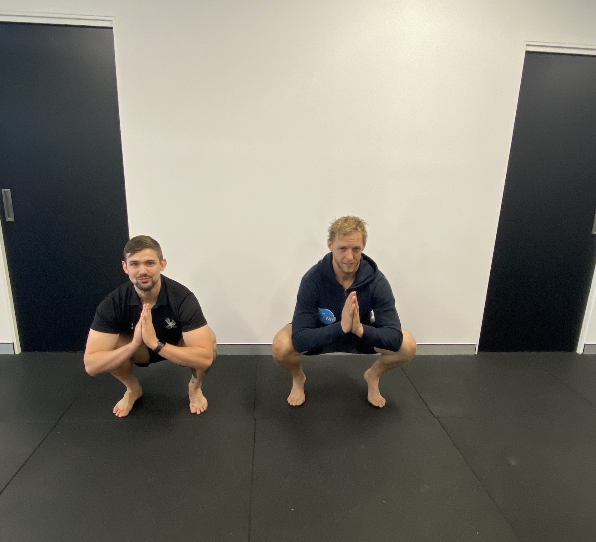 A really good goal is to be able to hold a deep squat position for 60 seconds with your heels flat on the floor, chest nice and proud. This one is really difficult and most of us really struggle to get into this position.